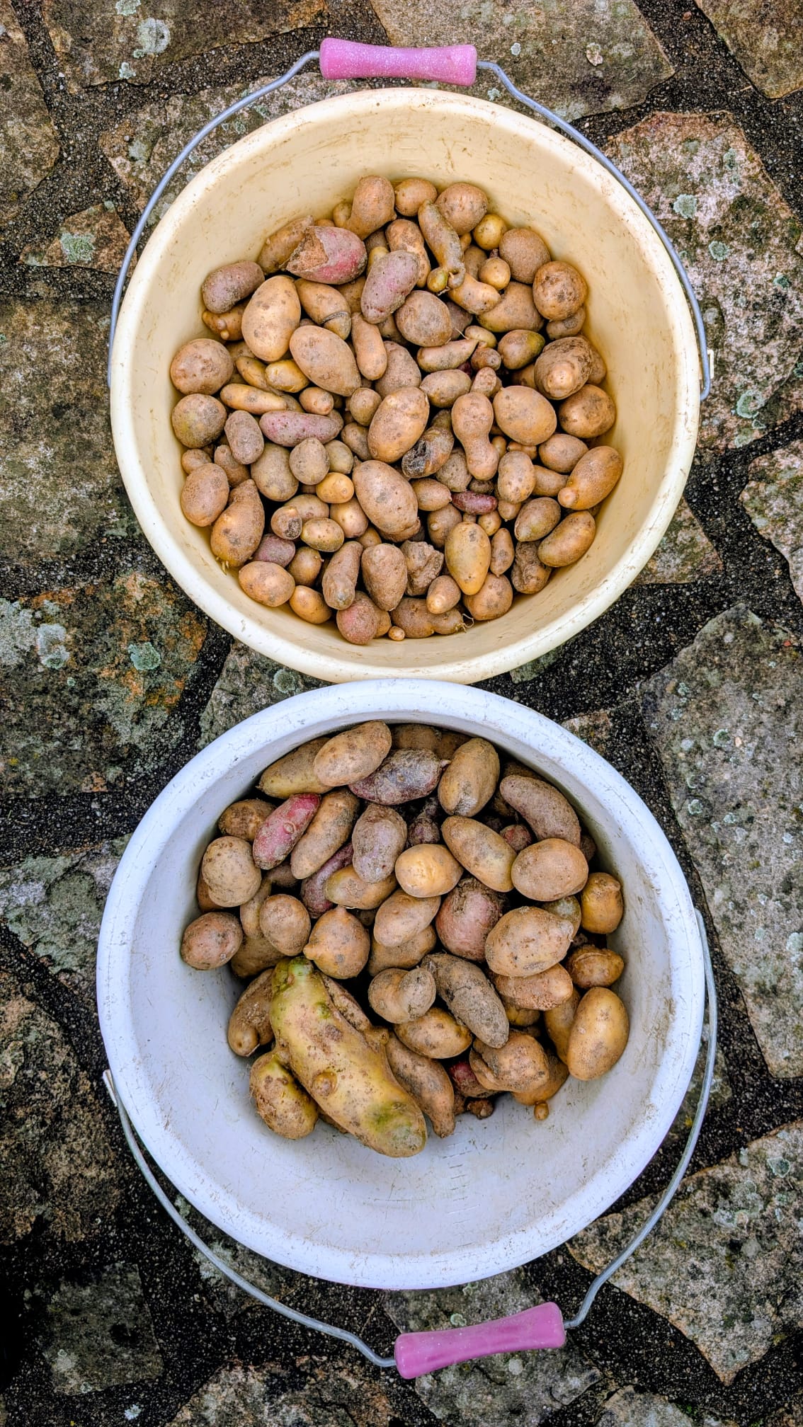 Étant donné la sécheresse de cet été (seulement 10 journées de pluies épisodiques à la fin juillet, avec en tout 110 millimètres), je m’attendais à une récolte assez misérable pour … Lire la suite de Récolte de pommes de terre 2025: pas terrible, pas terrible…