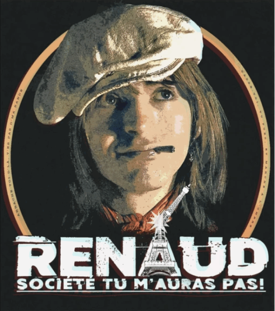 Si j’avais du choisir la chanson que je préférais dans mes années collège, j’aurais hésité entre « Laisse béton », Marche à l’ombre », « Les aventures de Gérard Lambert », « Dans mon HLM », « Mon beauf »… Mais je me tourne vers une chanson plus ancienne, issue de son premier album paru en 1975, car aujourd’hui elle me parle beaucoup plus. Dans « Société tu m’auras pas », Renaud adopte une posture de rebelle engagé qui était sans doute tout à fait sincère mais qui, avec le recul, quand on sait ce qu’a été sa trajectoire de vie, est un peu de pacotille (dans les premiers vers il se situe lui-même dans la lignée de Bob Dylan, ce qui est assez risible). Très clairement influencé par Mai 68, il exprime un rejet systématique des conventions sociales, de la morale bourgeoise et des institutions oppressantes et standardisantes (la famille traditionnelle, le travail, l’armée, les « cons en uniforme » …), une revendication farouche d’insoumission et d’indépendance (« On les a récupérés, / oui mais moi on m’aura pas » – de fait la société l’a eu, et pas qu’un peu), un appel à la révolte et même à la révolution (« la Commune refleurira » ). Tout cela est exprimé avec des arrangements basiques (ce n’est vraiment pas pour la musique qu’on se souviendra de Renaud), et un langage direct et provocateur deviendra qui l’une de ses principales marques de fabrique.