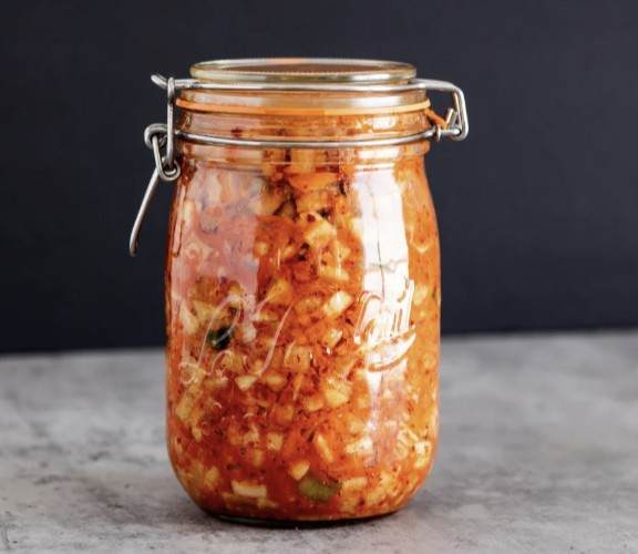 Je n’ai pas encore essayé d’en faire moi-même car il faut d’abord que je me forme sérieusement, mais je sais que le radis daikon se prête très bien à la lactofermentation, notamment sous forme de kimchi (il est alors mariné avec de l’oignon, du gingembre, de la farine de riz, des piments…)