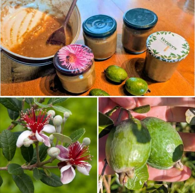 Je me réjouis donc d’avoir planté ces quatre goyaviers du Brésil (autre nom du feijoa). D’autant plus que les fleurs du feijoa sont vraiment magnifiques, ce qui ne gâche rien – avec le feijoa, il y a à voir et à manger