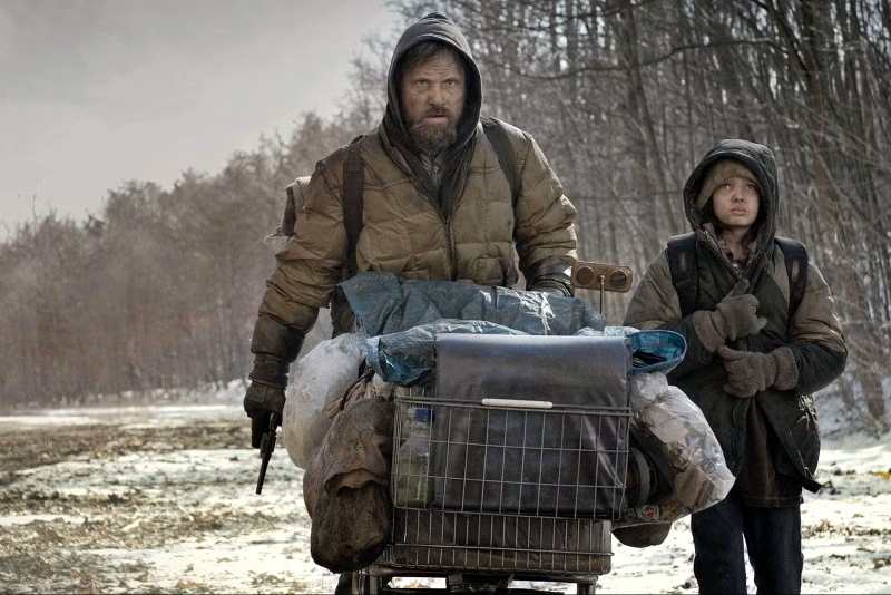 Il faut dire que sur la route, ce n’est pas que la désolation que l’on rencontre, c’est aussi la mort. Et pas seulement la mort qui a été provoquée par les éléments naturels déchaînés (des corps calcinés), mais aussi la mort qui a été donnée de sang froid par des humains désertés par l’humanité (des corps décapités, exposés à l’air libre, des têtes aux yeux vides et exorbités). Tout au long de leur dérive, l’homme et le petit croisent des cadavres desséchés comme des pruneaux, fossilisés à l’air libre dans le goudron fondu, et le père met souvent les mains devant les yeux de son enfant en se reprochant de ne pas avoir pu lui épargner ce spectacle atroce.